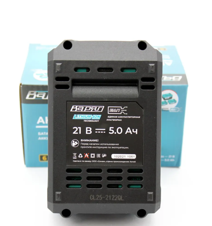 Аккумулятор ВАРЯГ АКБ-21/5,0 предназначен для аккумуляторного инструмента ВАРЯГ на базе единой аккумуляторной платформе. Оснащен индикатором уровня заряда, что позволяет контролировать его заряд. Литиево-ионная аккумуляторная батарея характеризуется отсутствием "эффекта памяти", ее можно заряжать при любой степени разрядки. Рекомендуется иметь запасной аккумулятор для возможности работы во время зарядки первого аккумулятора, исключая время простоев.