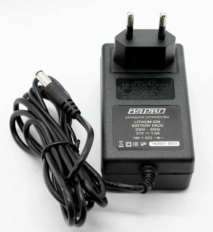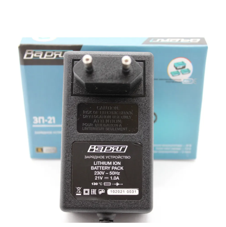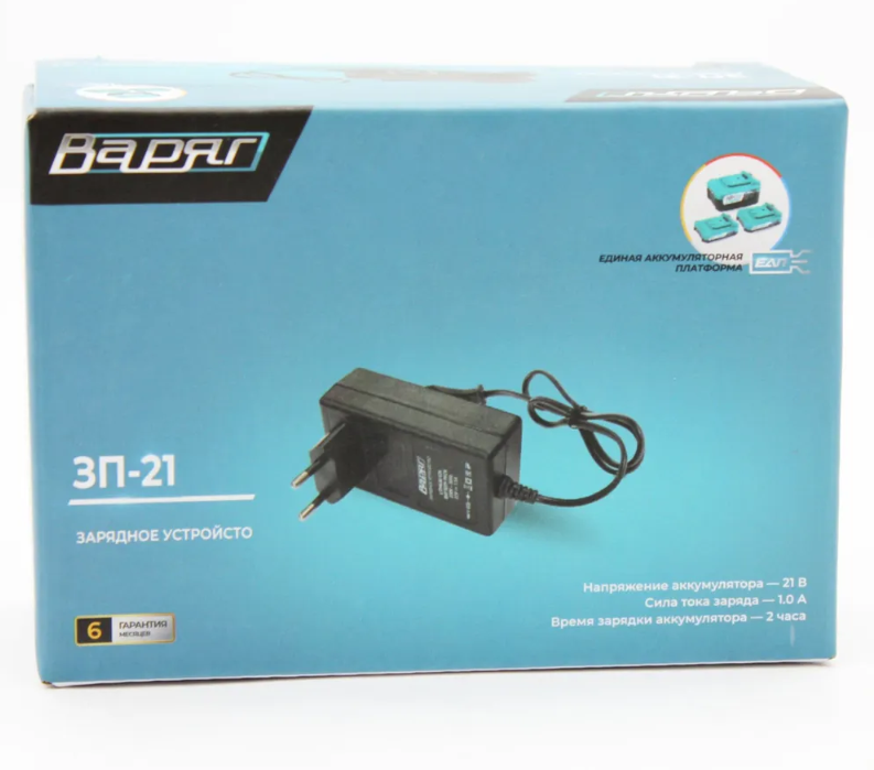 Устройство зарядное ВАРЯГ ЗП-21 предназначено для зарядки литиево-ионных (Li-Ion) аккумуляторов с напряжением 21 В.Напряжение аккумулятора - 21 В;Сила тока заряда - 1.0 А;Время зарядки аккумулятора - 2 часа;«ВАРЯГ» – это ручной инструмент, насосное оборудование, электро и бензоинструмент, разработанный специалистами с использованием современных технологий. Продукция изначально проектировалась с учетом российских условий эксплуатации: анализ российских реалий и лучших импортных образцов позволил инженерам и конструкторам создать мощный, безопасный и в то же время доступный для потребителя продукт. Процесс производства продукции находится под контролем отечественных специалистов. «ВАРЯГ» – инструмент высокого качества, который хорошо зарекомендовал себя на Российском рынке, прочно заняв свое место в среднем ценовом диапазоне.