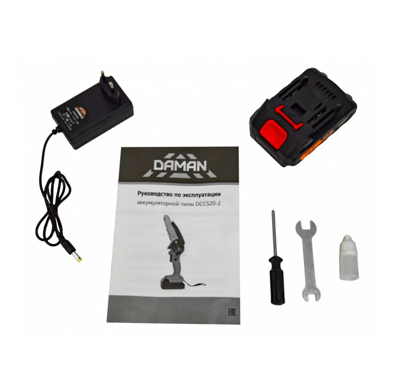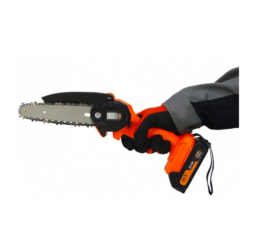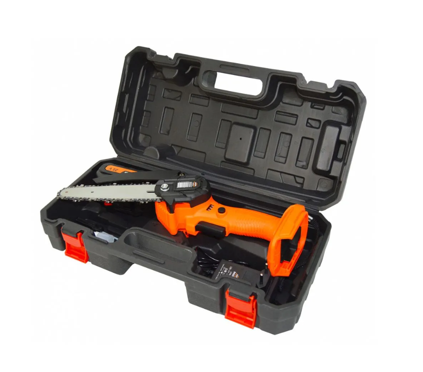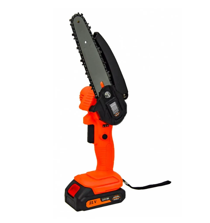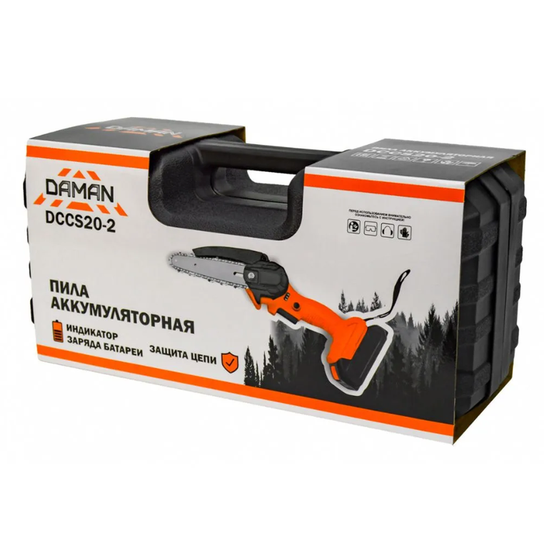 Мини-пила цепная аккумуляторная Daman DCCS20-2 (550 Вт, шина 6", скорость цепи 9,8 м/с 1АКБ, ЗУ, кейс). Незаменима при работе в мастерской или в саду для распиливания различных материалов.