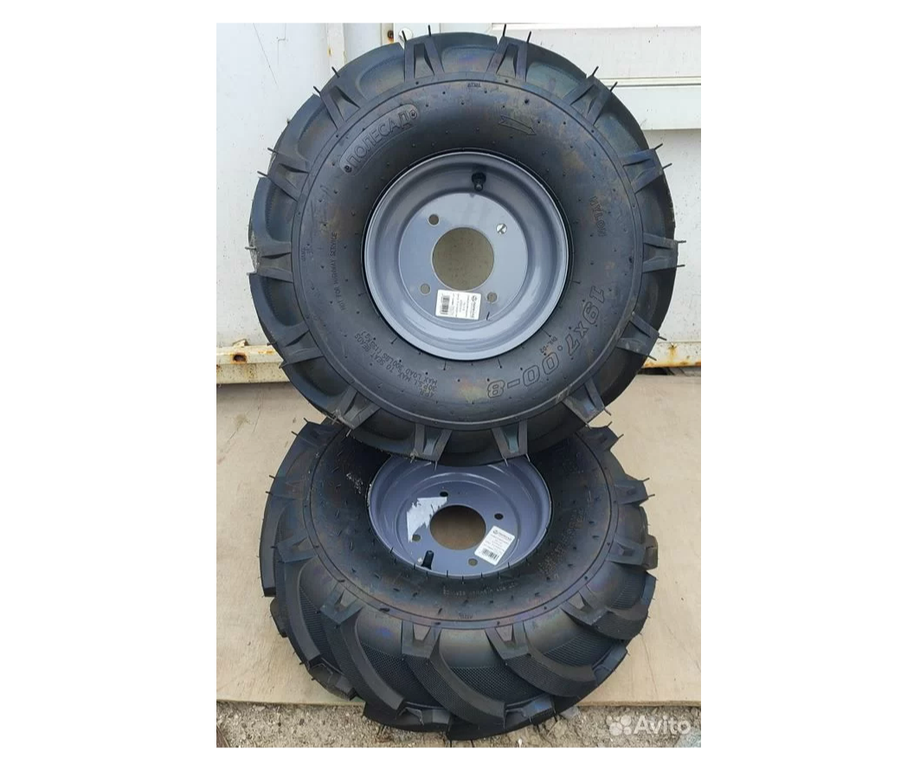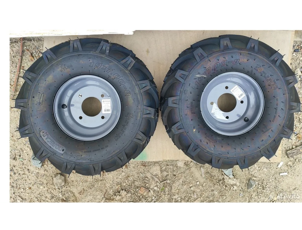 Колёса на мотоблок в сборе 19х7х8 Extreme (2 шт). Модельный ряд колес для сельскохозяйственной техники - включает в себя пневматические колеса для мотоблоков, мотокультиваторов, минитракторов. Пневматические колеса изготовлены из полумягкой резины.Резина на пневмо-колесах отличается высоким качеством и прочностью, благодаря чему колеса выдерживают большие нагрузки и негативное влияние окружающей среды.