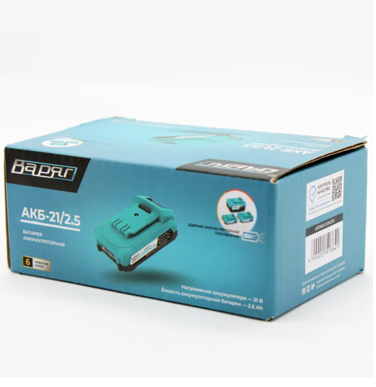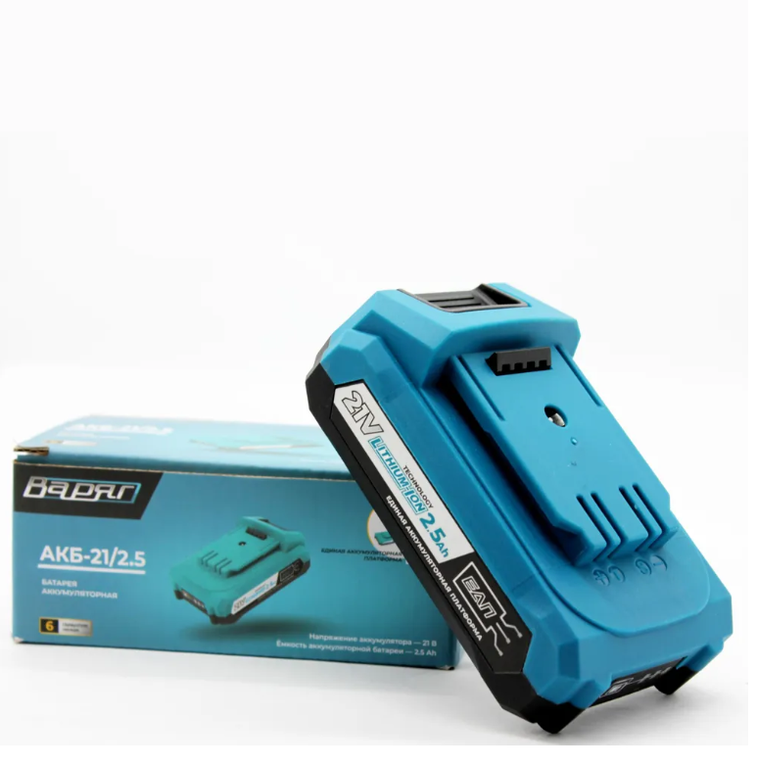 Аккумулятор "ВАРЯГ" АКБ-21/2,5 предназначен для аккумуляторного инструмента "ВАРЯГ" на базе единой аккумуляторной платформе. Работу множества самых разных инструментов можно обеспечить с помощью батареи и зарядного устройства единого образца. Что это дает: экономию при покупке других инструментов из линейки; возможность решать большой фронт задач с минимальными вложениями; отсутствие лишнего груза при перевозке. Чтобы пользоваться большим количеством инструмента, достаточно приобрести одну-две батареи.
