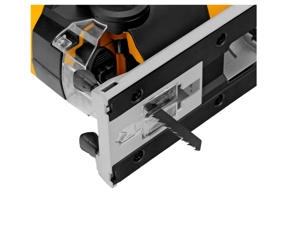 Аккумуляторный лобзик Denzel CJ-80 27201 работает от источника питания Li-Ion с рабочим напряжением 18 В, емкостью 2 А/ч. Предназначен для прямого и фигурного реза листовых материалов из древесины и пластмассы, а также металлических заготовок, ламината, ДСП, ДВП. Максимальная глубина пропила деревянных материалов составляет 80 мм, алюминиевых — 12 мм, стальных — 5 мм. Мощный двигатель позволяет развивать скорость движения оснастки до 2400 ход/мин, что обеспечивает высокую производительность.