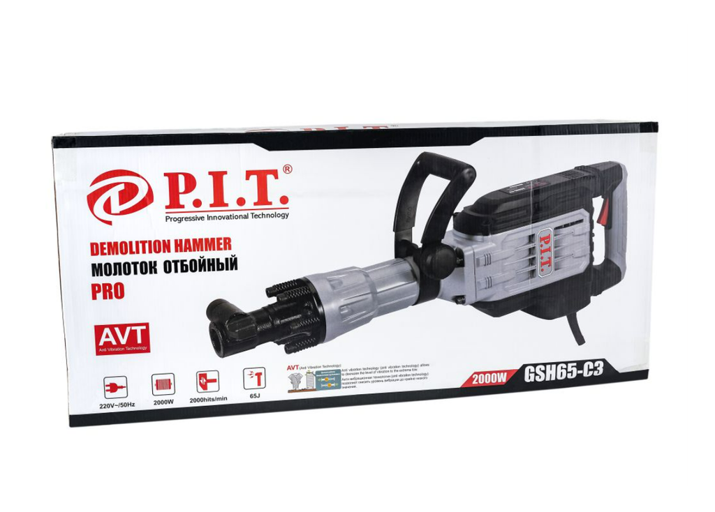 Молоток отбойный сетевой P.I.T. GSH65-C3 МАСТЕР Сильный отбойник для тяжелых задач. Благодаря выдающейся силе удара в 65 Дж разрушает бетон, кирпич, грунт, асфальт. Оснащен самым крепким и надежным типом патрона - HEXAGON. Долгий срок службы обеспечивает цельнометаллический алюминиевый корпус, который снижает риск поломки и предотвращает протечку масла. Полностью медная обмотка выдерживает до 200 градусов. В комплекте к инструменту идут дополнительные угольные щетки. Дополнительная рукоять и эргономичная форма гарантируют удобную работу. Мощный и эргономичный инструмент для ударного разрушения конструкций. Отличный выбор для ремонта и стройки.