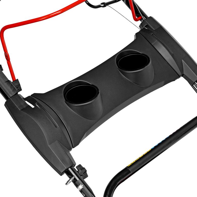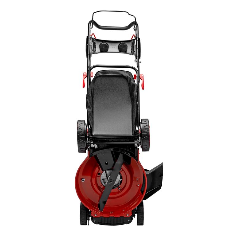 - Компактность — благодаря складной рукоятке и комбинированному травосборнику газонокосилка не занимает много места в зоне хранения.