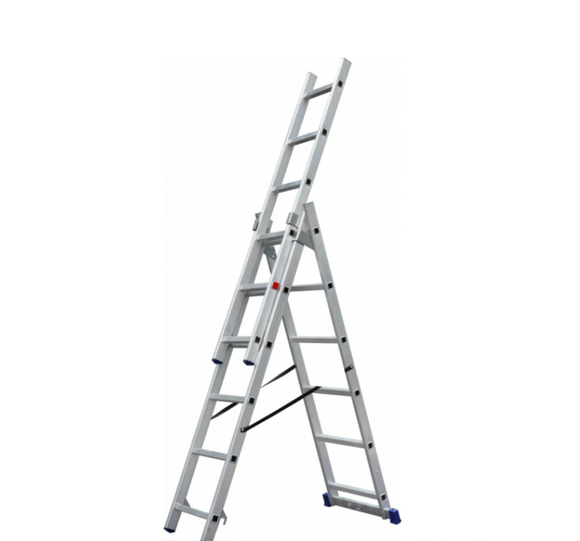 Лестница алюминиевая трёхсекционная – это универсальная лестница, которой можно пользоваться как стремянкой или как приставной лестницей.