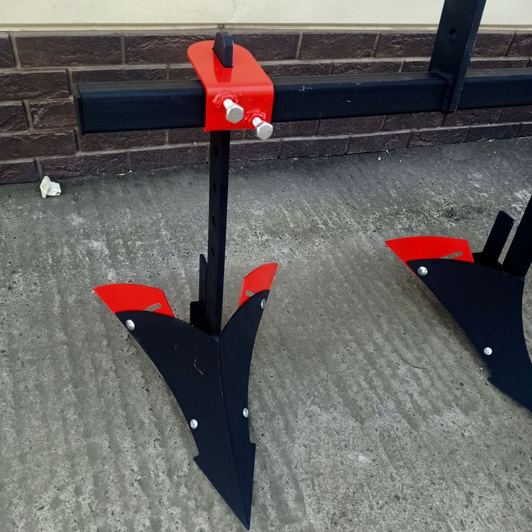 Корпус окучника изготовлен из листовой стали толщиной 4 мм, стойка окучника из стали 10 мм. Штанга Т-образной формы длиной 800мм, сечением проф. трубы 40*40 мм и толщиной стенки 4мм, обеспечивает достаточную жёсткость при эксплуатации на любых почвах. Хомуты крепления стоек окучника имеют толщину 4 мм и фиксируются посредством двух болтов М10.