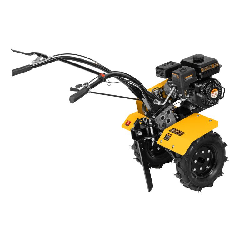 Мощность 7 л.с., ременное сцепление, ширина обработки 85 см, глубина 35 см,фрез 3х3, ШОМ,скорости 2 вперед/1 назад