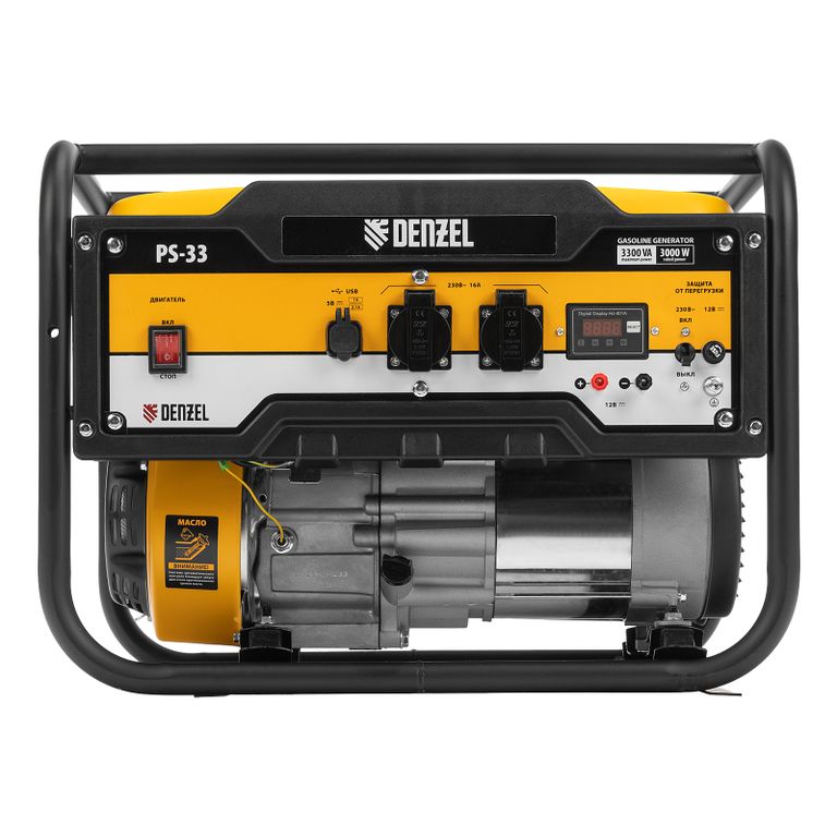 Генератор бензиновый PS 33, 3.3 кВт, 230 В, 15 л, ручной стартер Denzel