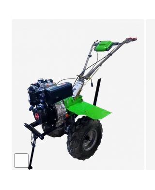 Двигатель дизельный, мощность 9 л.с., с электростартером. ВОМ 18 мм, передачи: 3 вперед/1 назад, руль: поворотный, вал: S32, фрезы: 4 группы (32 ножа).