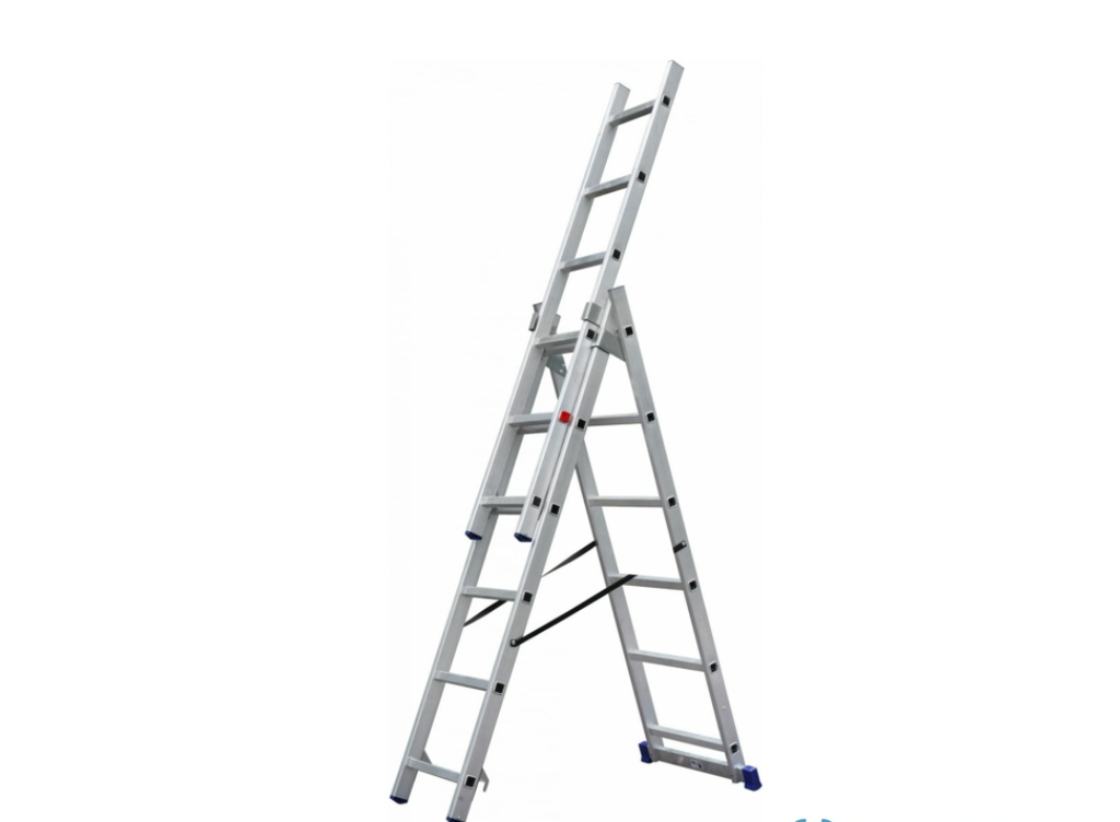 Лестница алюминиевая трёхсекционная – это универсальная лестница, которой можно пользоваться как стремянкой или как приставной лестницей.