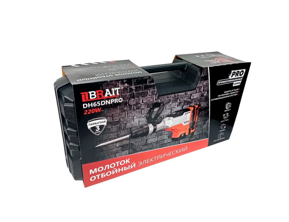 Молоток отбойный BRAIT DH65DN PRO предназначен для работ, требующих максимальной энергии удара, например, для разрушения конструкций из бетона, вскрытия асфальта, долбления бетонных и плиточных покрытий.