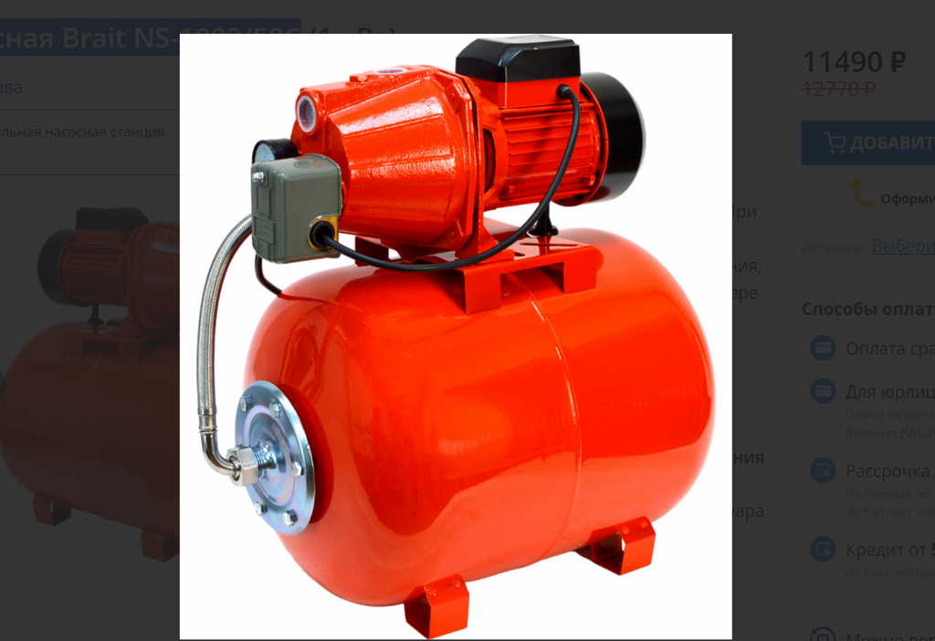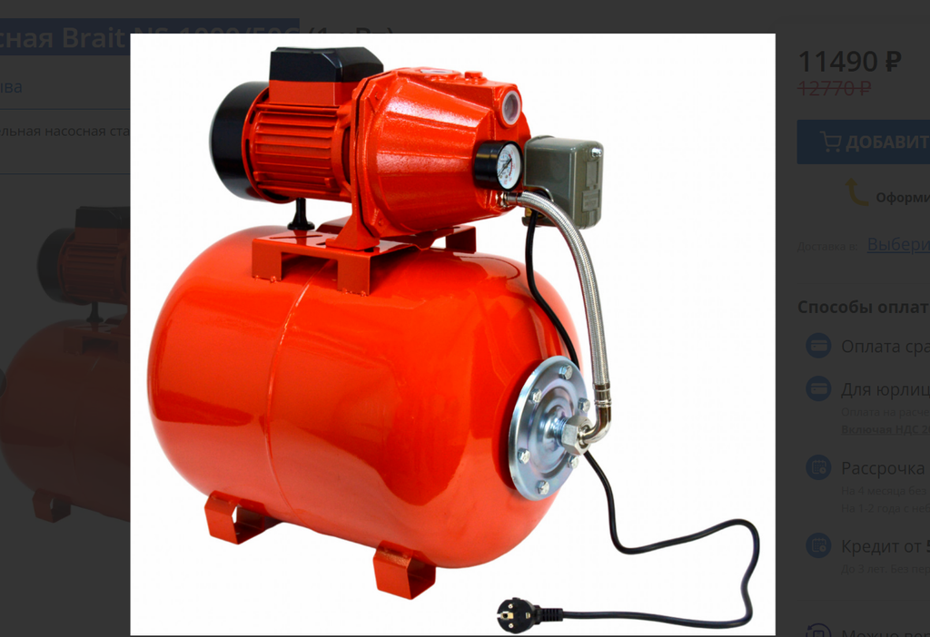 ( чугун, 1000Вт, гидробак 50л, напор 50м, подача воды 52л/м)