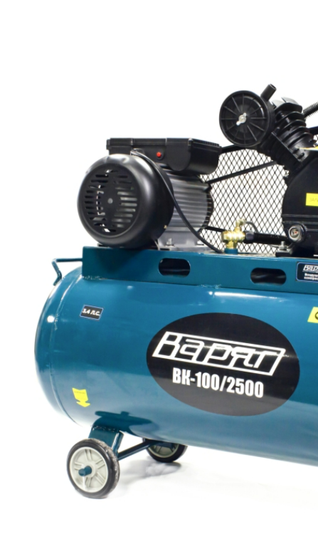 Компрессор Варяг ВКР-100/2500 используется в качестве источника сжатого воздуха для питания пневмоинструмента. Применяется для строительных работ, обслуживания автомобилей и отделки помещений. Рабочее давление 10 бар. Для удобства перемещения установлены колеса.Характеристики:
