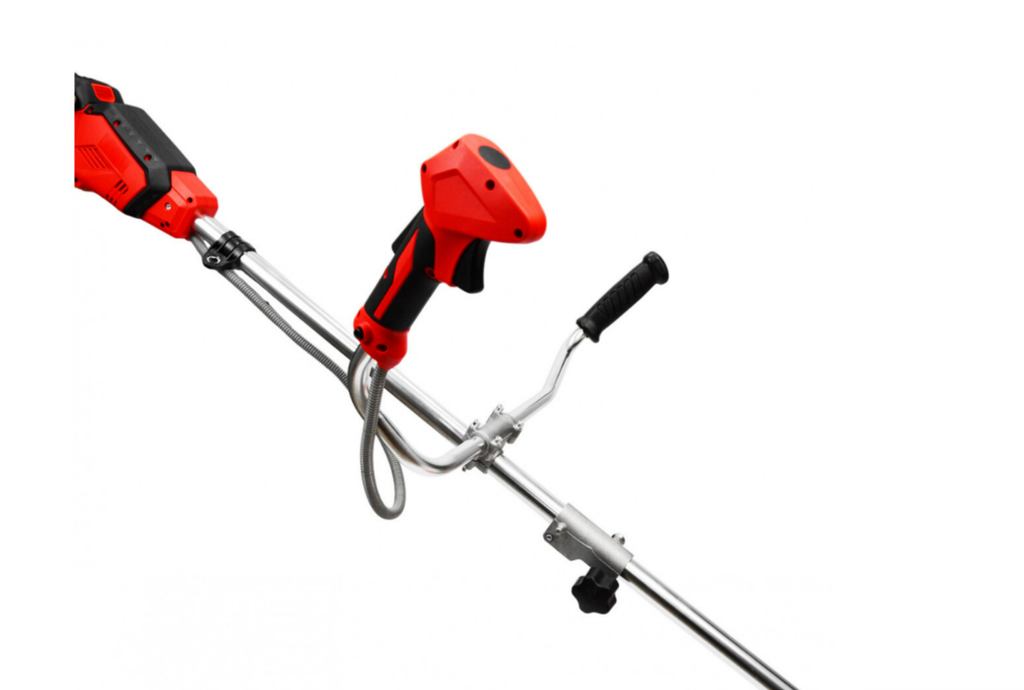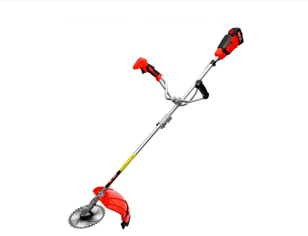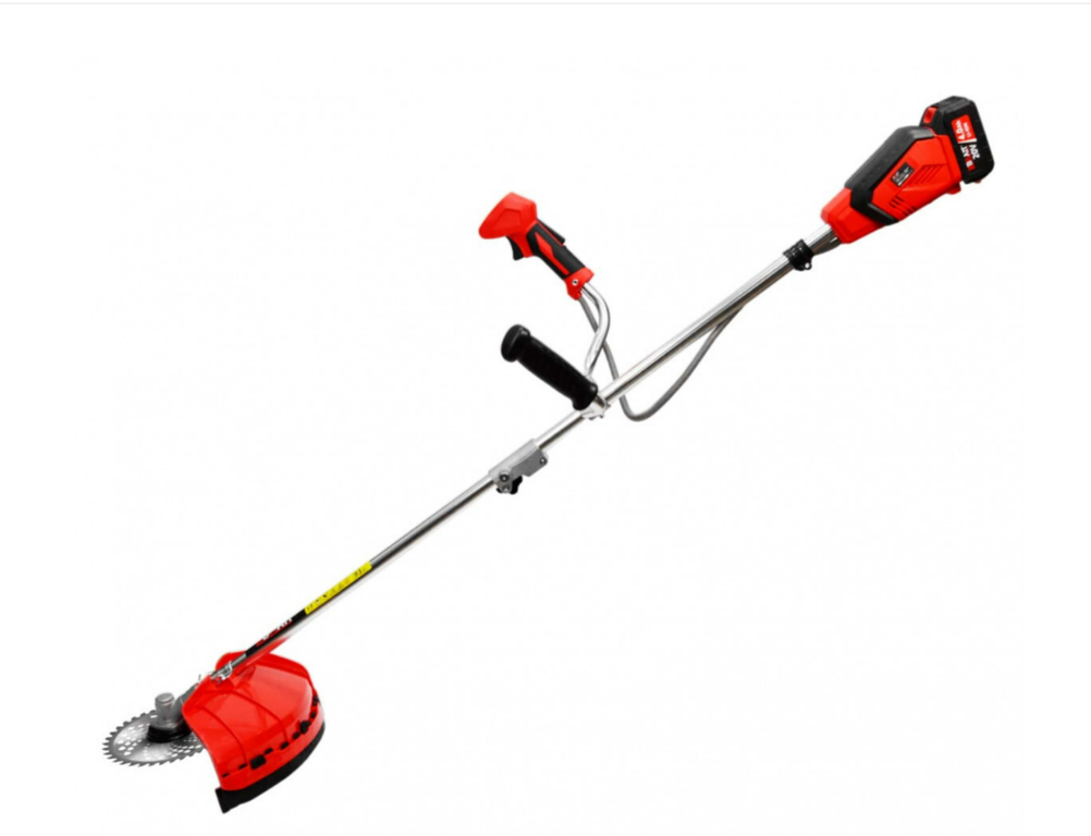 Мощность 850 Вт; ширина скашивания 420/230 мм; АКБ 4 Ач; G-образная ручка, частота вращения 8000об/мин; вес 5 кг