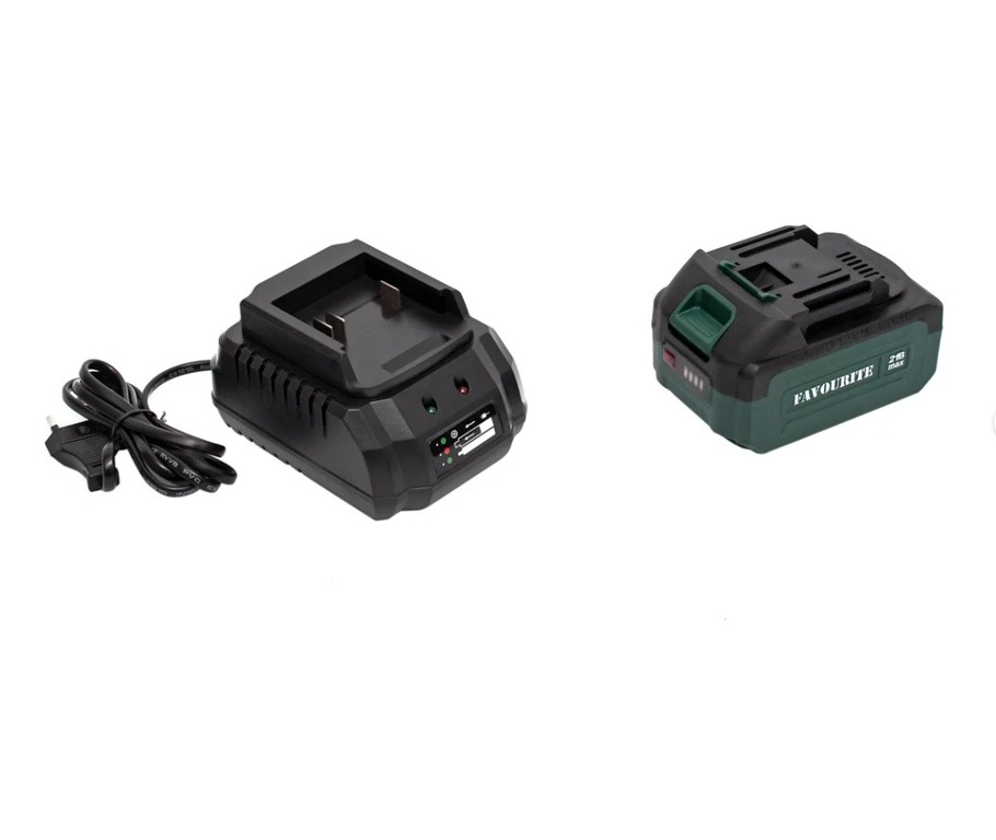 Мощность 21 Вт, мощность 4 л.с., аккумулятор 4 Ач и зарядное устройство в комплекте,