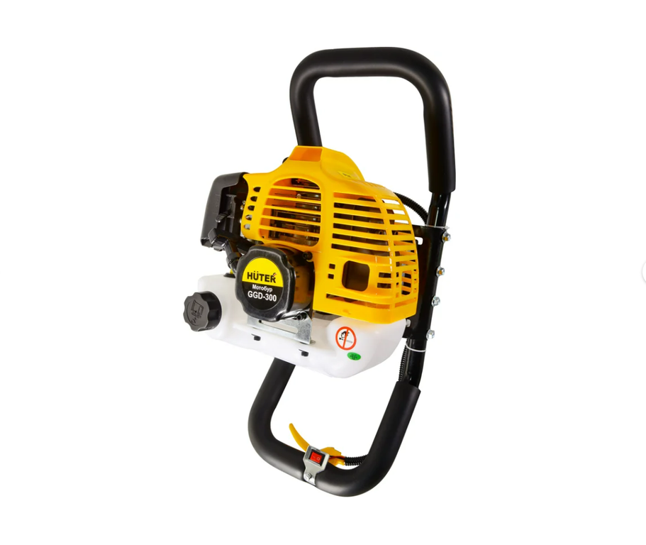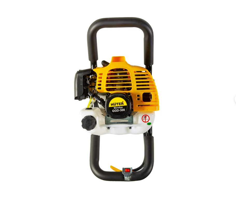 Мотобур HUTER GGD-300 оснащен двухтактным бензиновым двигателем мощностью 2 кВт, с объемом в 52 см³. Инструмент имеет вместительный топливный бак на 1,25 л. Топливная смесь готовится из бензина (АИ 92) и масла для двухтактных двигателей в соотношении 40:1.