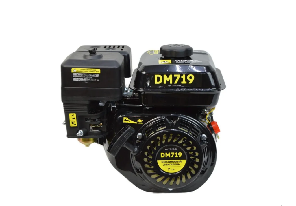 Бензиновый двигатель DAMAN DM719 мощностью 7 л.с., вал 19 мм, используют для установки на садовую технику: мотоблоки, культиваторы и пр. Аналог двигателя LIFAN. Система контроля уровня масла в картере.
