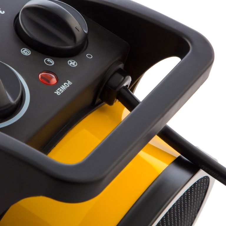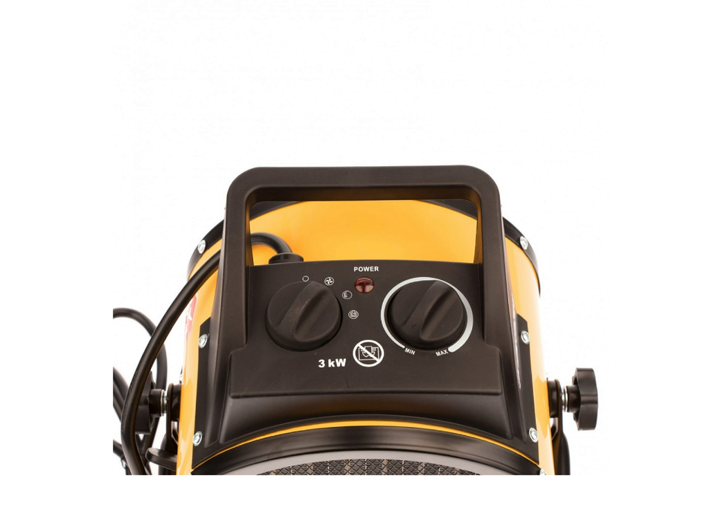 Тепловая пушка Denzel DHC 3-150 Керамический нагреватель потребляет мощность 0,025, 1,5 или 3 кВт в зависимости от установленного режима и подходит для бытового и полупрофессионального применения. С ее помощью можно обогреть помещение площадью до 40 кв. м или дистанционно просушить поверхность после отделки (оштукатуренные и окрашенные стены, стяжки). Также устройство можно использовать как вентилятор в жару. Керамический нагревательный элемент не сушит воздух и не выделяет вредных веществ, поэтому тепловентилятор безопасен для людей и животных.